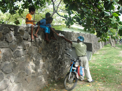 Güzel bir sürpriz olarak buraya giriş kişi başı 100 rupiymiş. 5 yaşından büyüklere tam bilet alınıyormuş. Biletçi Can'a bakarak