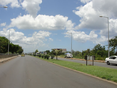 Uçağa daha epeyce saat olduğunda Doğu kıyısındaki Moka şehrine gidelim diye otobandan çıktık, ama biraz sonra trafik tıkandı. Biraz bekleyip açılmayınca U dönüşü ile tekrar otobana çıkıp Mahebourg'a kadar indik. Ben doğu kıyısını çok merak ettiğimden bu sefer Güney'den Kuzey'e doğru kıyıdan ilerledik. Rehber kitaplarda bu tarafın çok ıssız olduğu yazıyor. Gerçekten de bir iki köy dışında bir şey yoktu. Deniz de dalgalı sığ ve çamurluydu. 20 km kadar gidip yemek yiyecek bir yer bulamayınca geri döndük. Mahébourg şehir merkezine arabayı park ettik. Arabayı teslim alacak adama Mon Choicy'den telefon ettiğimde kendisinin havaalanına gelmesinin zor olacağını bu nedenle Mahebourg'da buluşursak bizi havaalanına bırakacağını söylemiş, saat 4'te arabayı kiraladığımız Otel Orient'de buluşmak üzere sözleşmiştik.