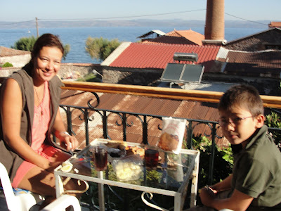 Türkiye’den yanımızda getirdiğimiz çay, peynir, zeytin ve taze ceviz ile odamızın balkonunda bir güzel kahvaltı yaptık.